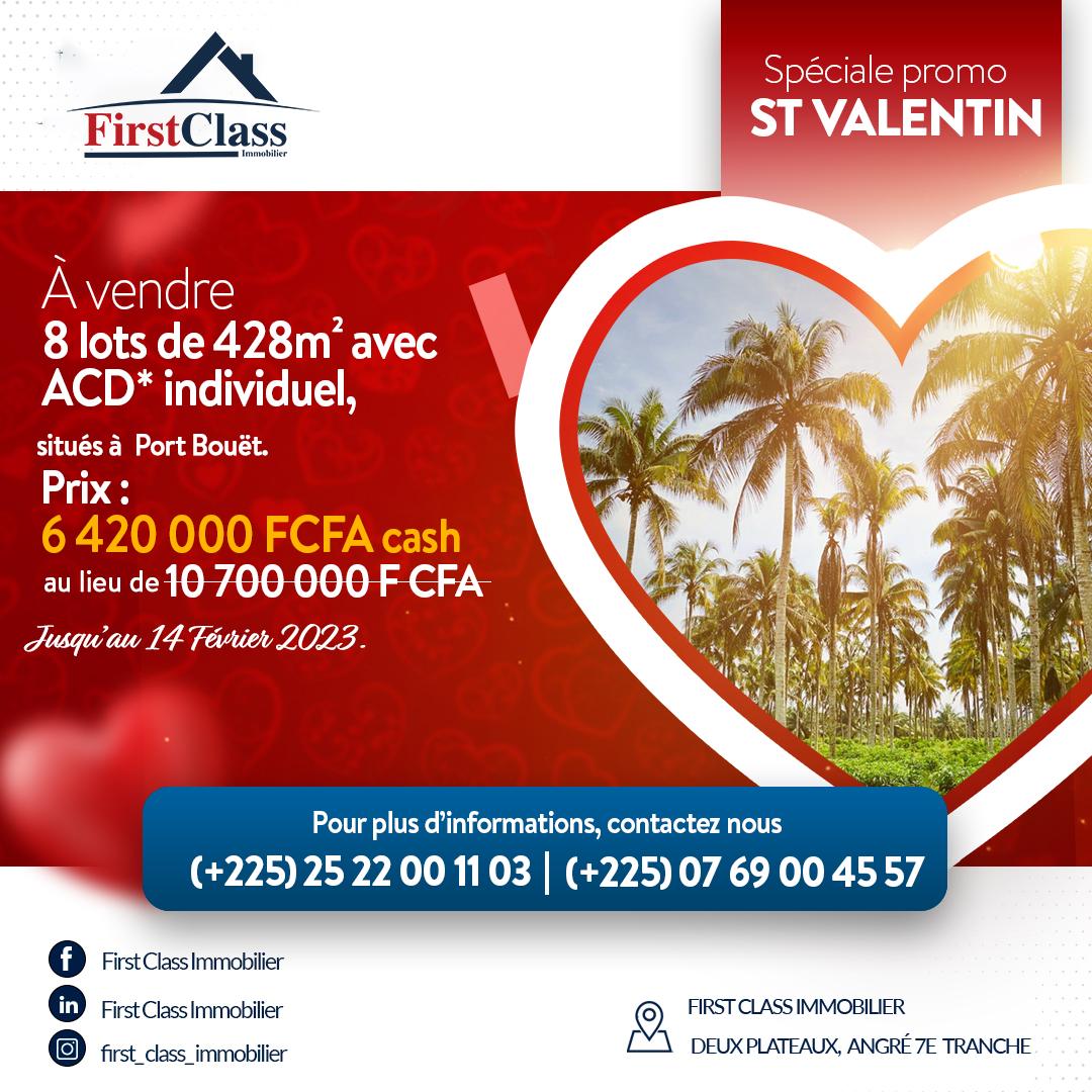 8 lots de 428 m2 avec ACD individuel, situé à Port-Bouët.