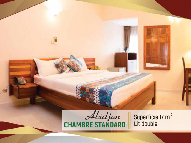 ABIDJAN Réception 24h /24h ; Sécurité 24h/24, 7j/7j ; Parking Intérieur ; Salle de sport ; 8 salles de réunion ; Un bar ; Une navette ; Un ascenseur ; 59 Chambres.